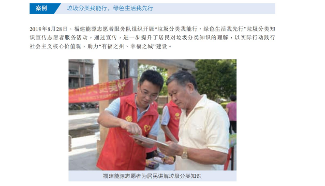 中國神華積極踐行“ 奉獻、友愛、互助、進步” 的志愿服務精神,以滿足當地民眾需要為根本, 始終如一地開展公益活動,凝聚愛心、服務社會、傳承文明。 2019年,參與志愿活動的員工達 7,613人,員工志愿活動總時長達65,697小時。